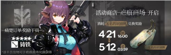 注意:其中新增干员【铸铁】仅在本次「生于黑夜」活动中获得。玩家可通过活动关卡作战、将开放“痛楚订单”活动任务,【往日幻象】限时寻访开启